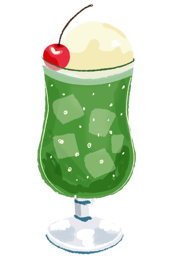 若い女性たちの間でメロン色のソーダにアイスクリームが乗ったクリームソーダが大ブームとなりました。