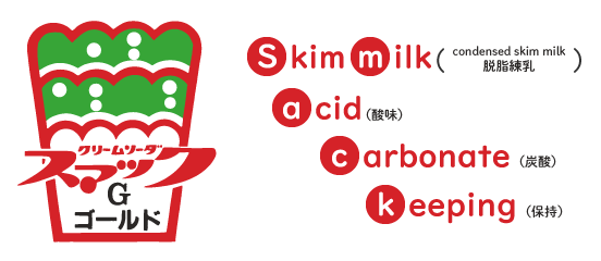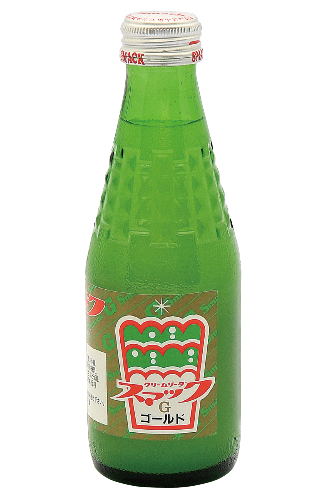 『クリームソーダ スマックゴールド』(通称『スマック 』)は昭和43年生まれの優しい甘さの炭酸飲料です。